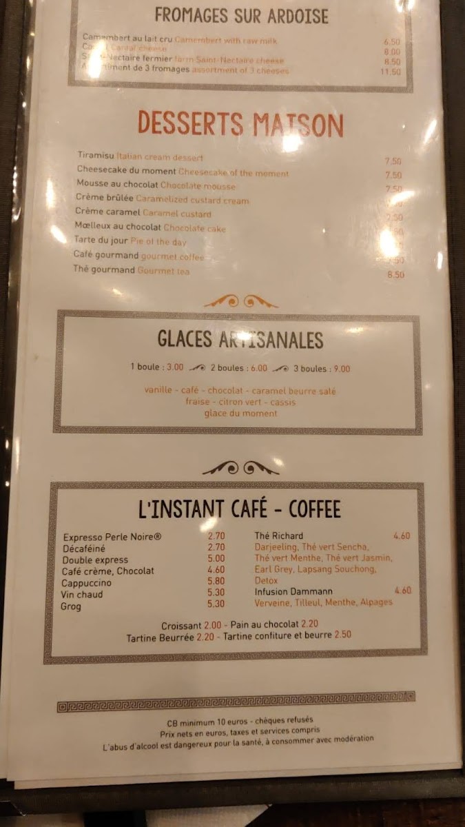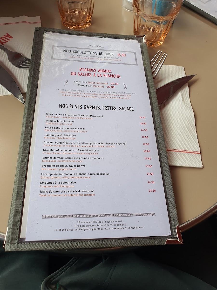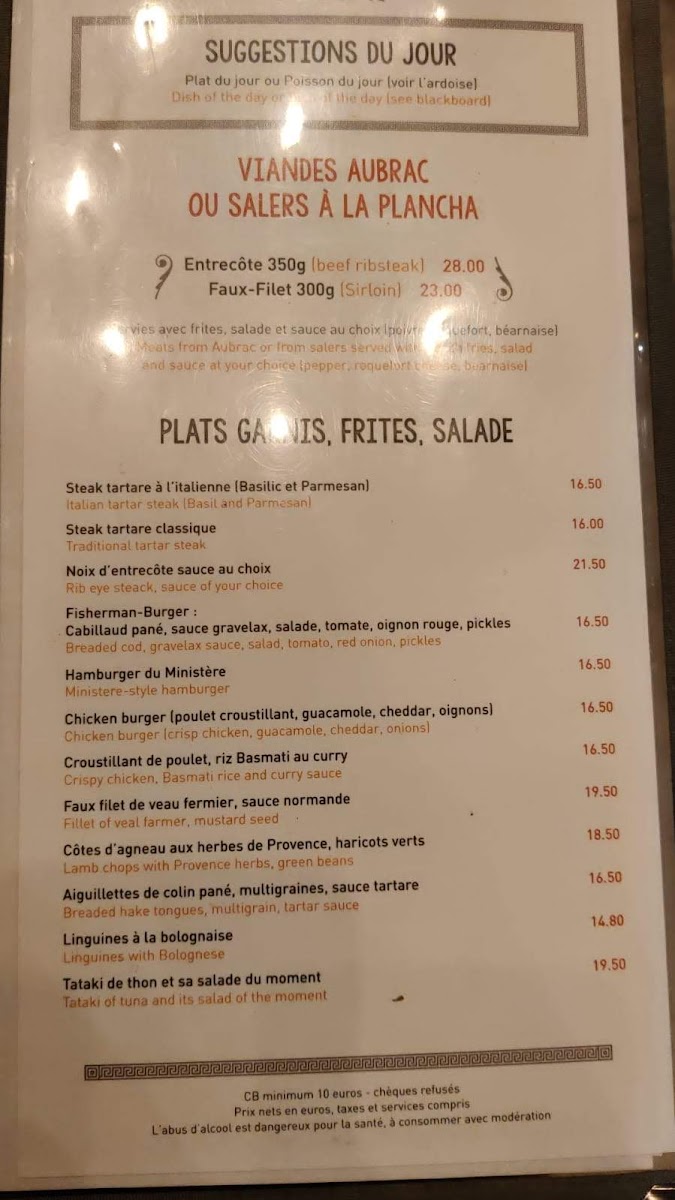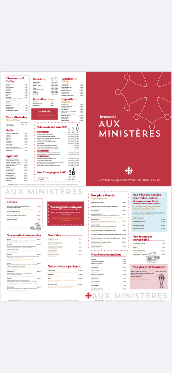 Introducing the menu of Aux Ministeres, a charming brasserie nestled in the heart of Paris at 53 Av. de Segur. This inviting spot captures the essence of French dining with a warm and relaxed atmosphere. Guests have raved about the attentive staff who offer quick service, making it ideal for both a leisurely coffee or a hearty meal. Diners can indulge in traditional French dishes, from rich pâté to succulent burgers, complemented by a well-curated selection of wines.